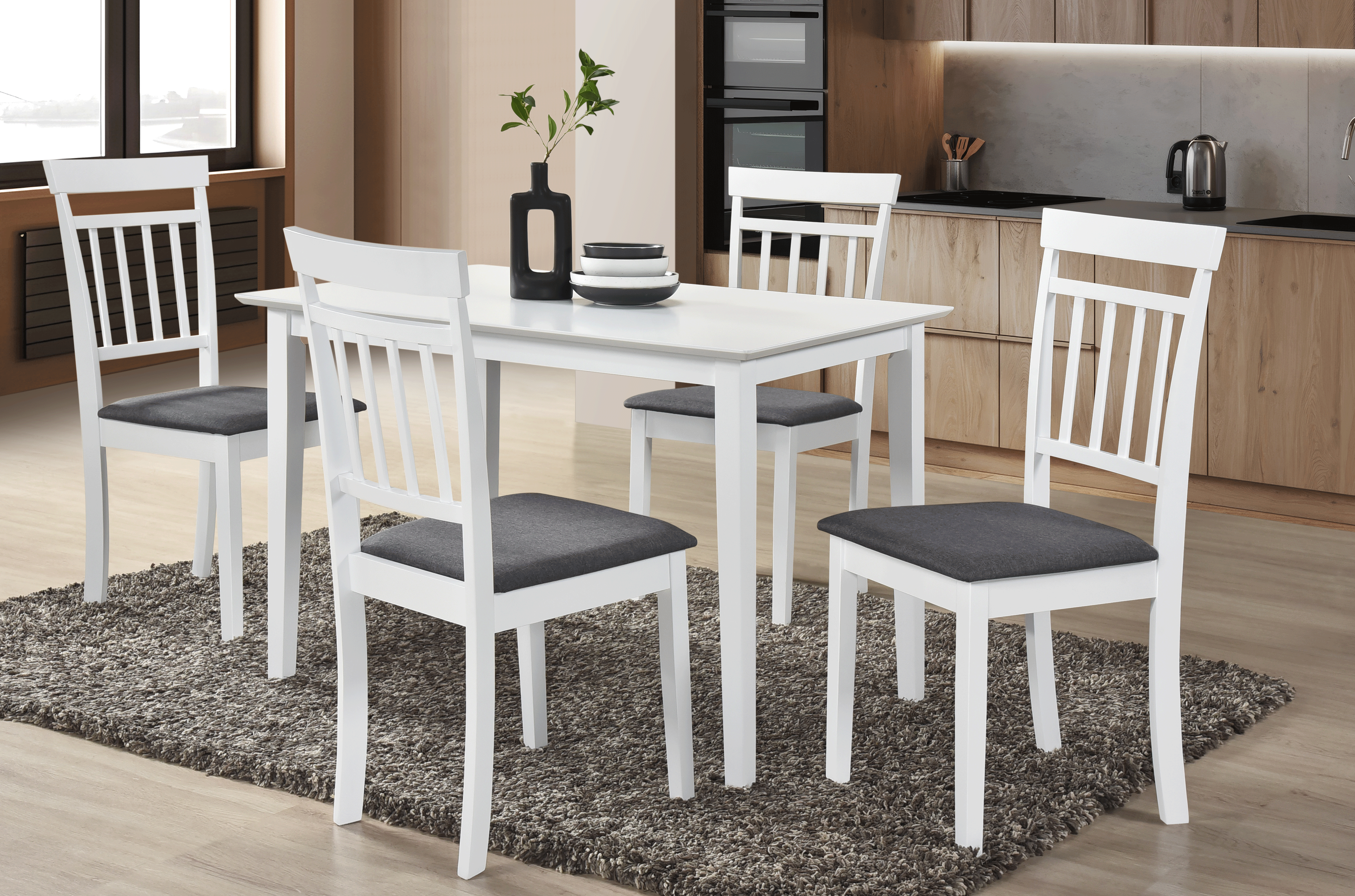 Scaunul Hudson se evidentiaza prin liniile sale curate, spatarul arcuit si sezutul tapitat confortabil. Acest design echilibrat permite integrarea sa in multiple tipuri de decor, de la interioare clasice, rustice sau vintage, pana la spatii moderne cu accente naturale. Cu o nuanta calda de alb si tapiterie gri neutra, scaunul Hudson adauga luminozitate si rafinament, completand armonios atmosfera din orice spatiu.